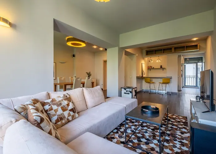 Modern Yet Rustic Style City Centre Apt 2Br/2Bth ferielejlighed ligger i Yellow Pavement område i Sofia, 5 km fra Sofia lufthavn. Denne indkvartering består af 2 soveværelser, 2 badeværelser og et udstyret køkken.